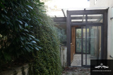 Grande cuisine d'été avec véranda, offrant une jolie vue dégagée sur le terrain.